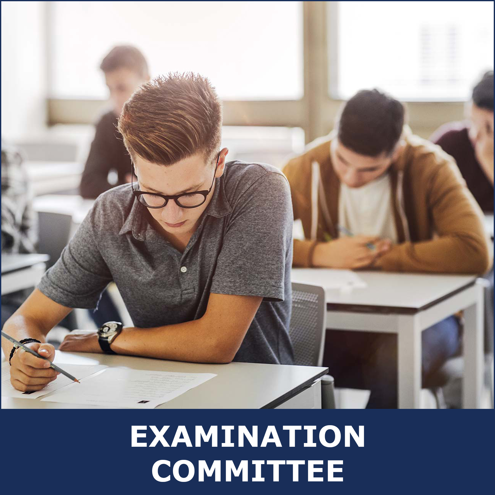 The Examination committee is an apex body of the Institute which is headed by Examinations In-Charge (EI) and shall be facilitated by three sections: Examination, Record Maintenance and Administration. The main function of this Committee is to carry out examinations, publish results and award certificates (provided by the University and Institute) to the students who pass the final examinations. Keeping the record of each and every issue related to the examination and organizing workshops and seminars for the improvement of the examination system are also the responsibilities of this Committee.